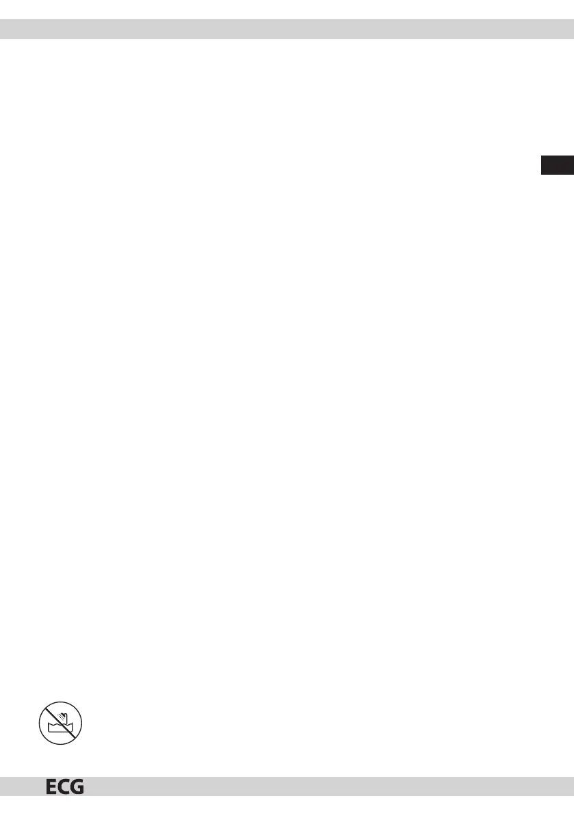 9. Przewód zasilania nie może dotykać rozgrzanych elementów, ani ostrych krawędzi. Przewodu nie należy