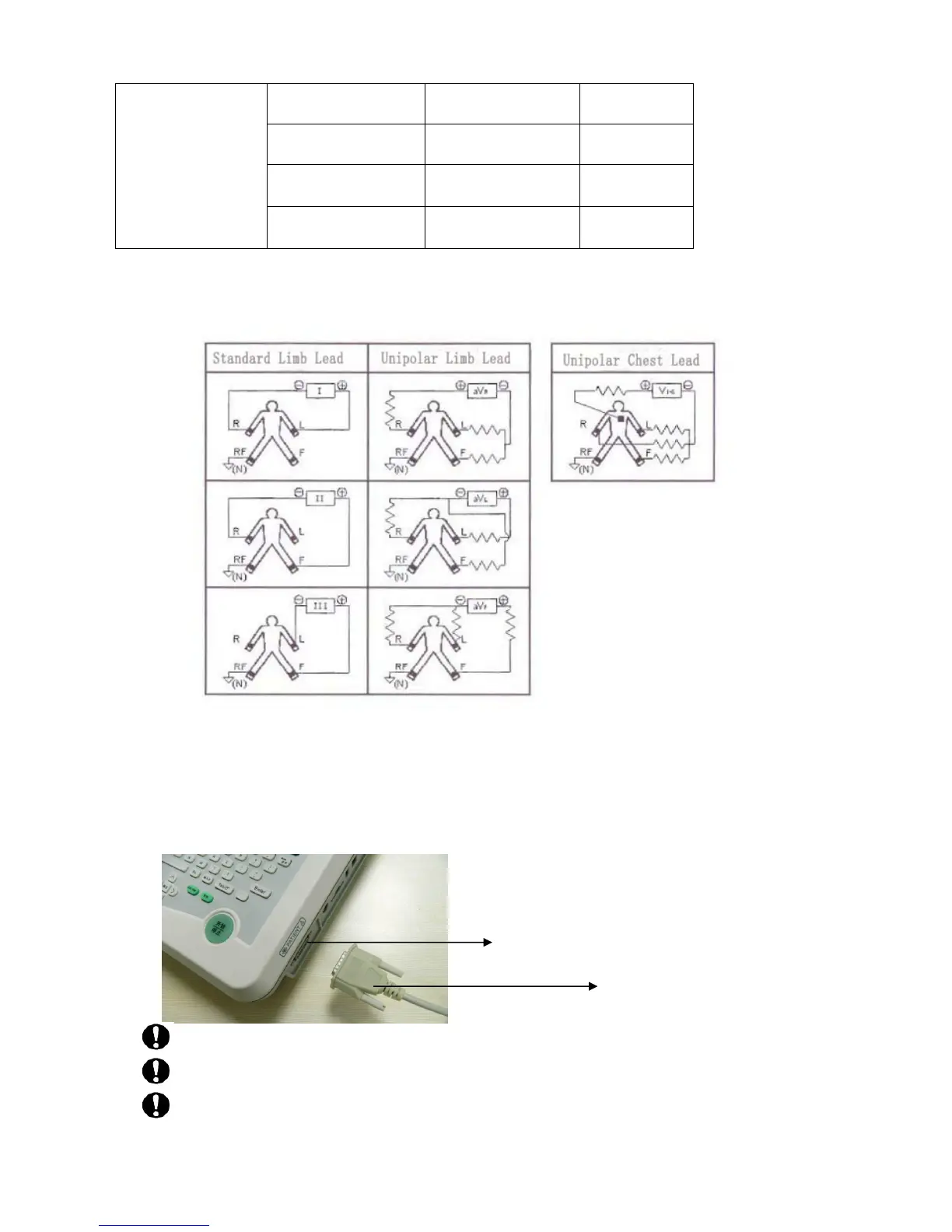 Patient cables socket is designed for ECG signal input only. Do not use it for other Purpose