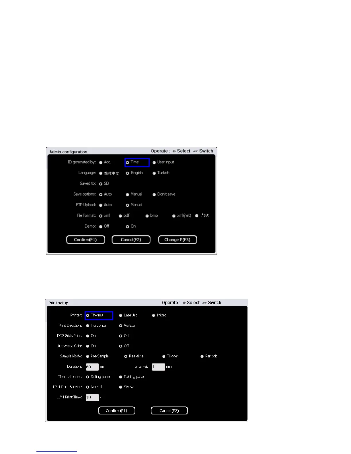 Press button1to enter print setup interface in the system setup interface. The interface is shown as