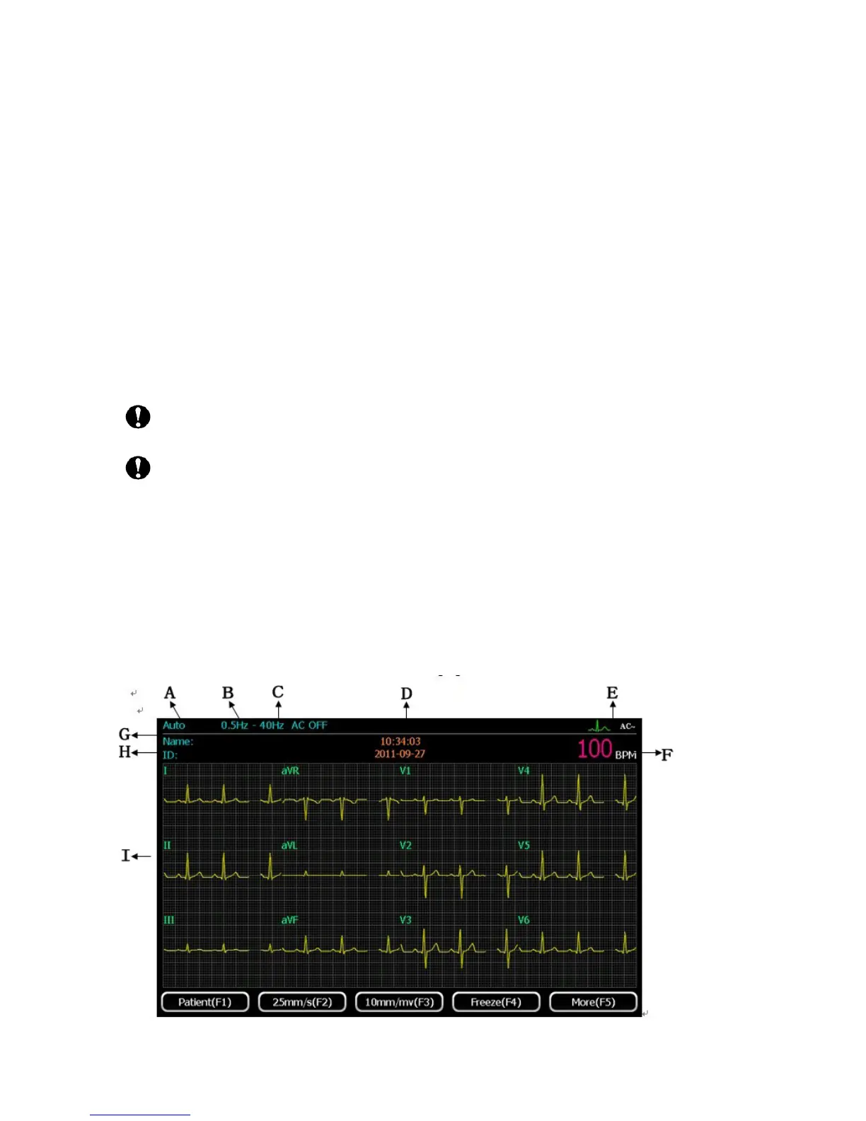 beeps and starts working, the ECG is ready for operation.