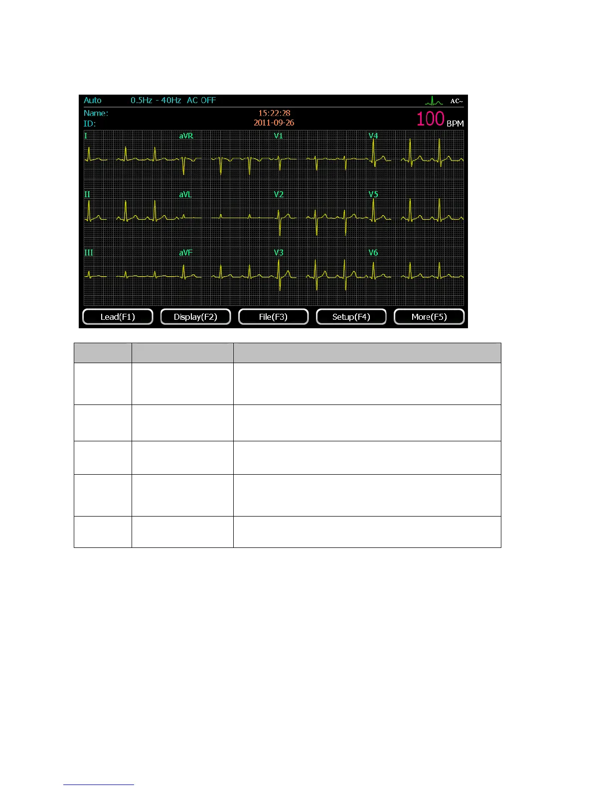This ECG has three operation modes: Manual mode, AUTO mode and Rhythm mode. Users can