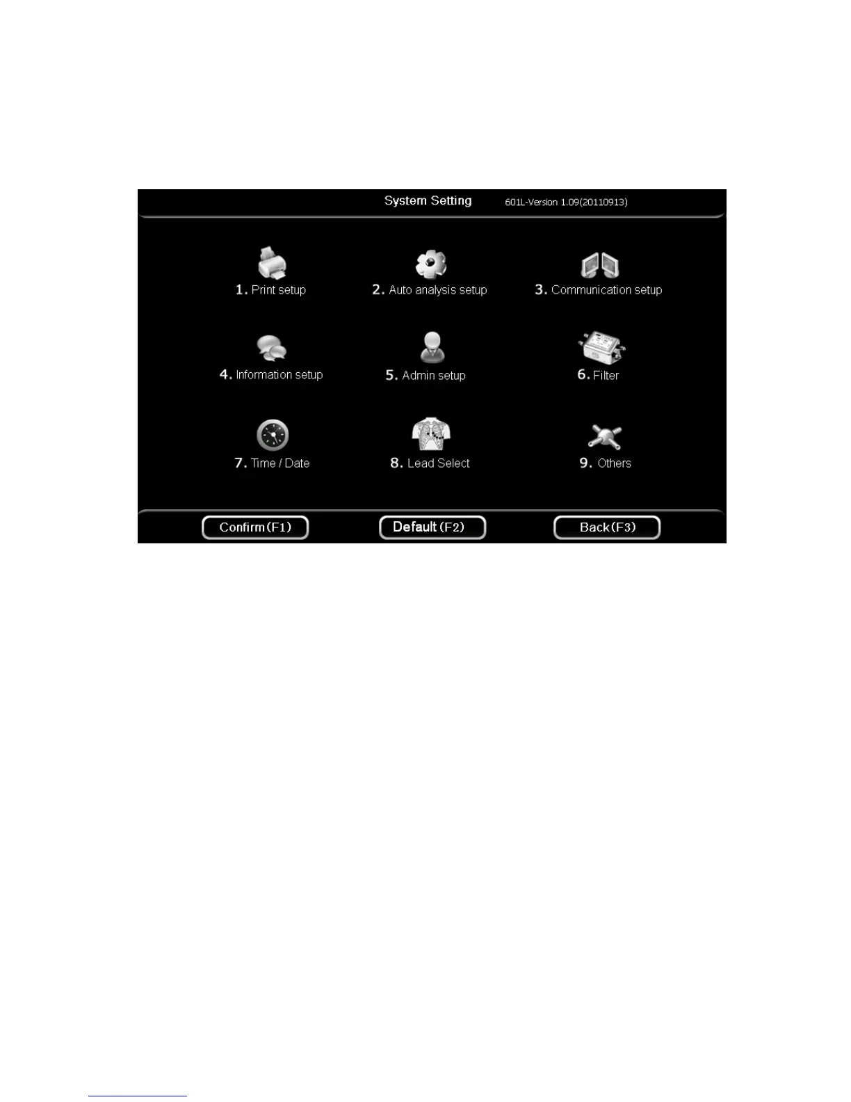 On the second page of the main interface, press 【F4】 to enter system setup interface. The