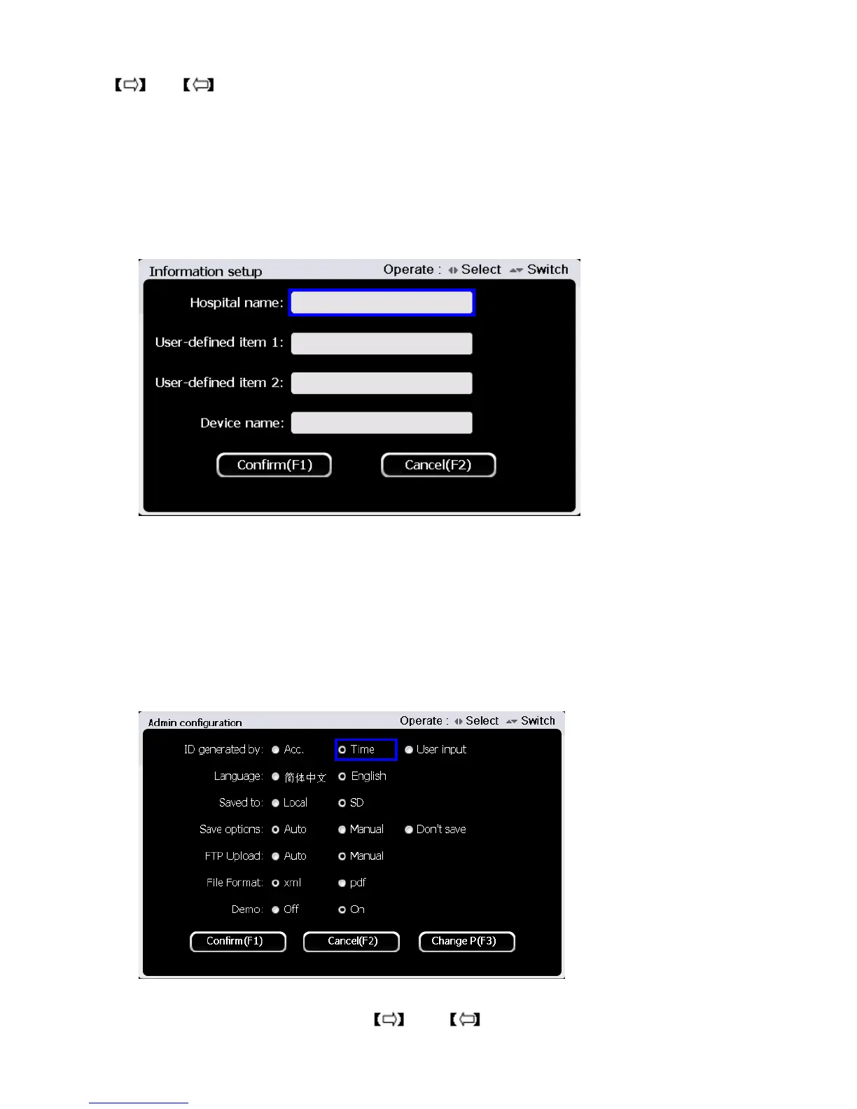 Press 【F1】 button to save information setup and return, or press 【F2】 button to cancel and return.