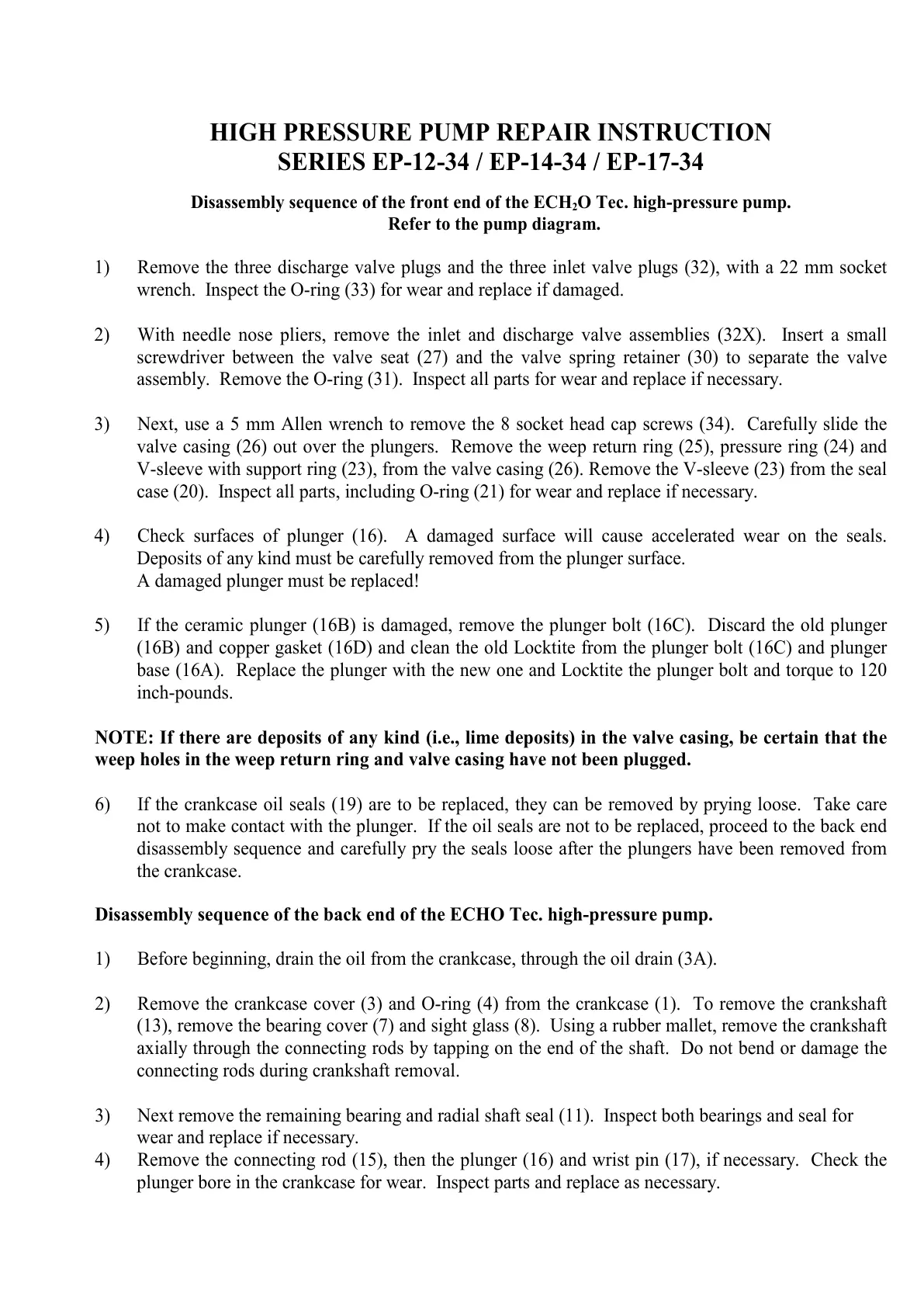 HIGH PRESSURE PUMP REPAIR INSTRUCTION