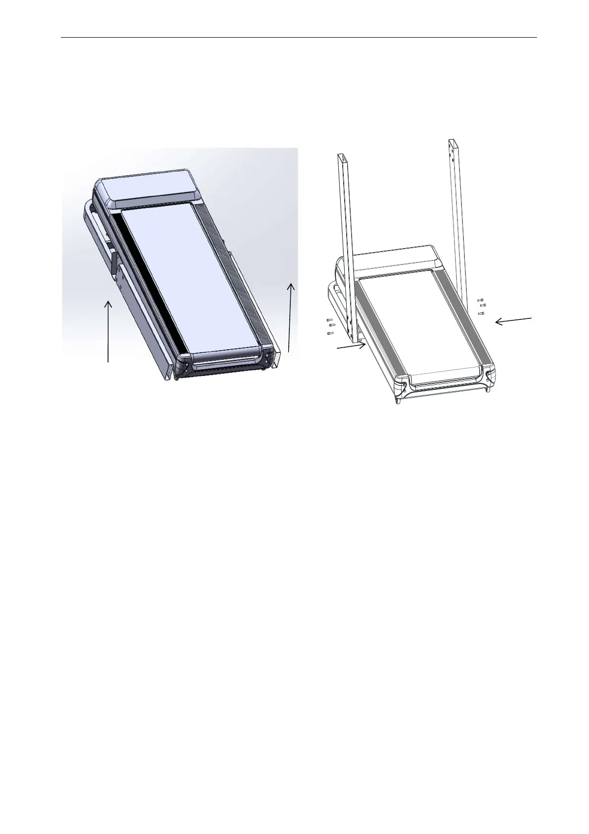 securing running deck to main frame until treadmill is in desired assembly location. Doing