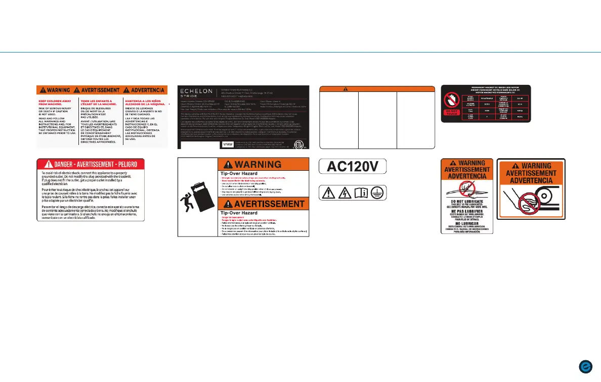 to the treadmill or plug. Review the above labels to ensure none are missing from the Echelon