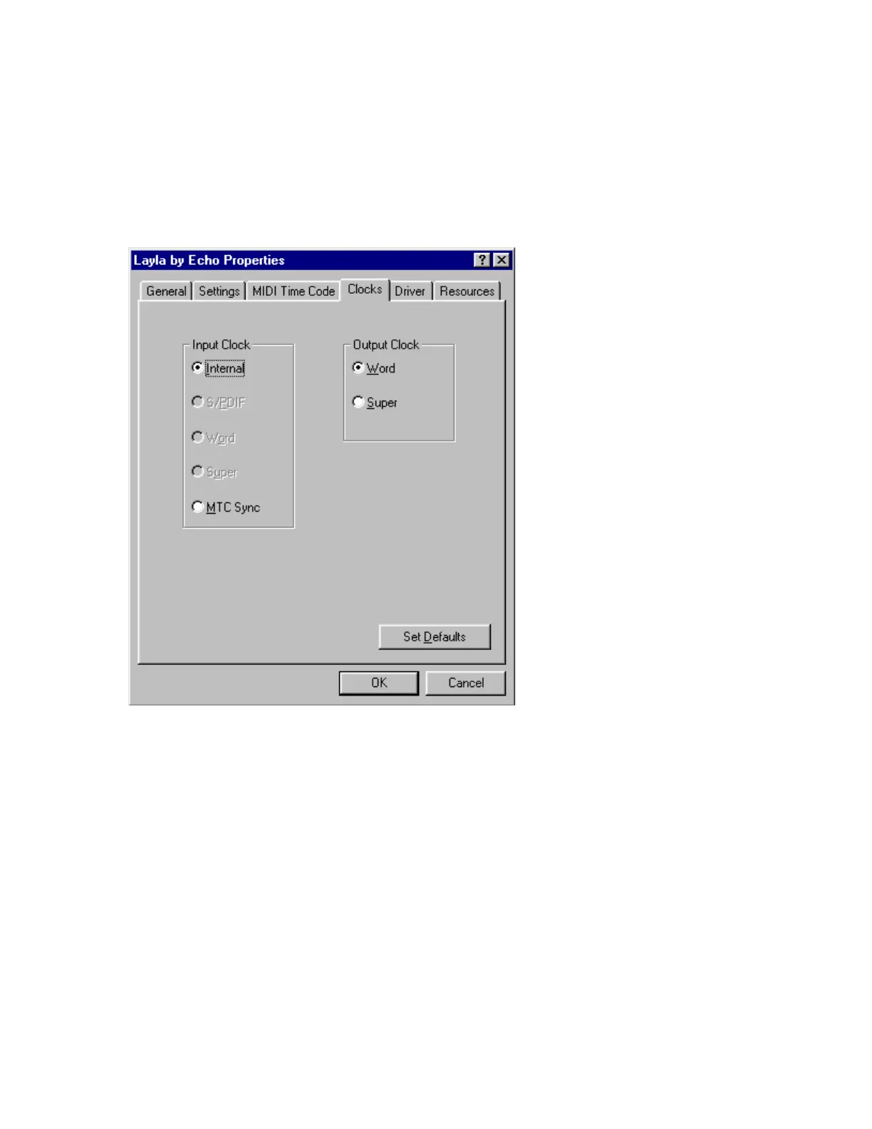 Only those clock sources that Layla determines to be available will be
