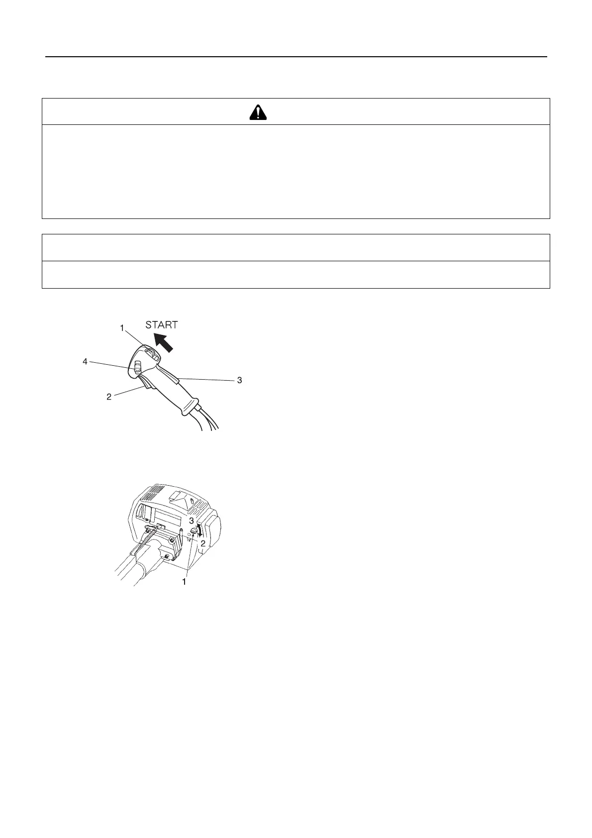 Pull out the starter grip gently at first, and then more rapidly. Do not pull the starter rope out to more than 2/3 of its length.
