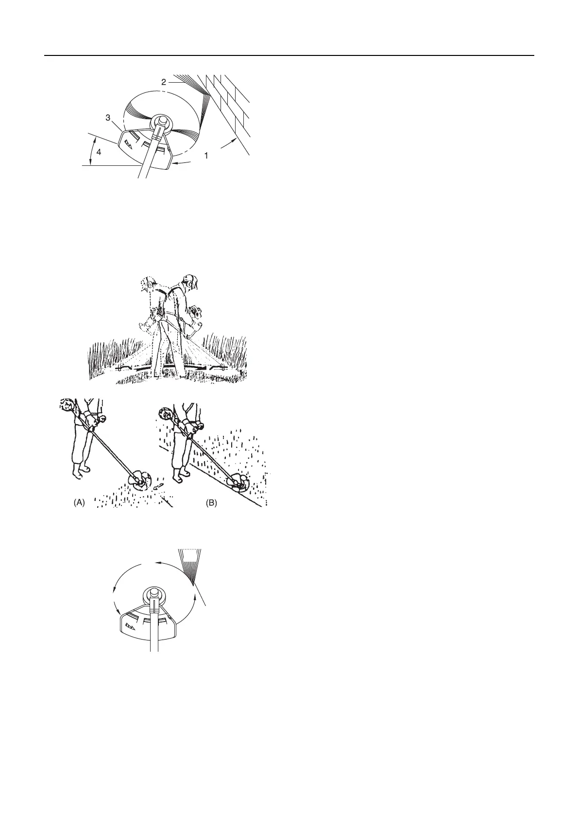 cutting head to direct the debris away from you on the scything