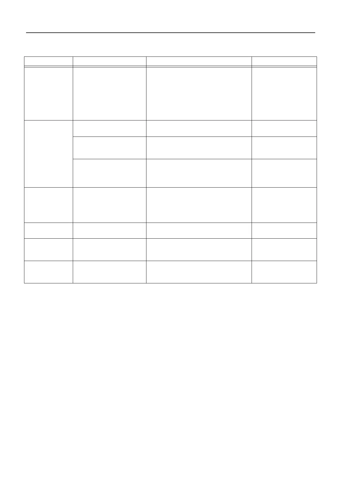 Troubleshooting table