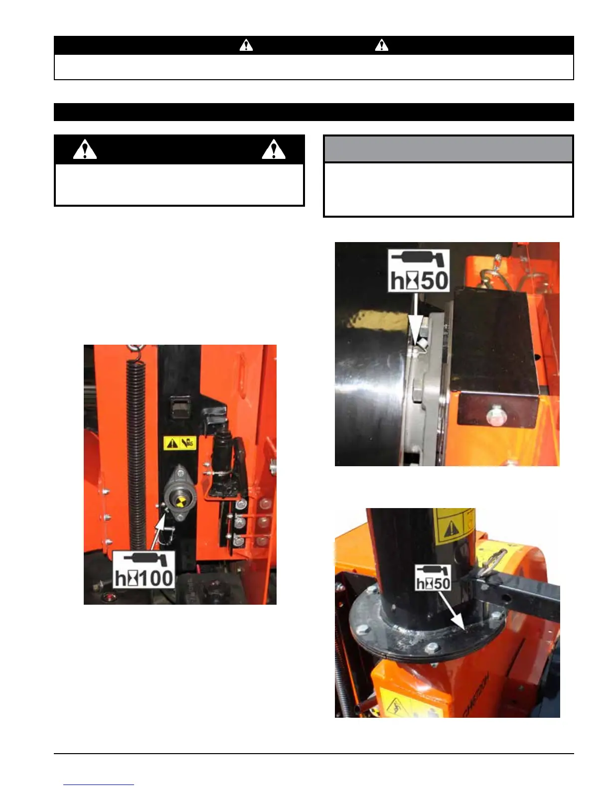 Grease the following points every 50-100 hours of