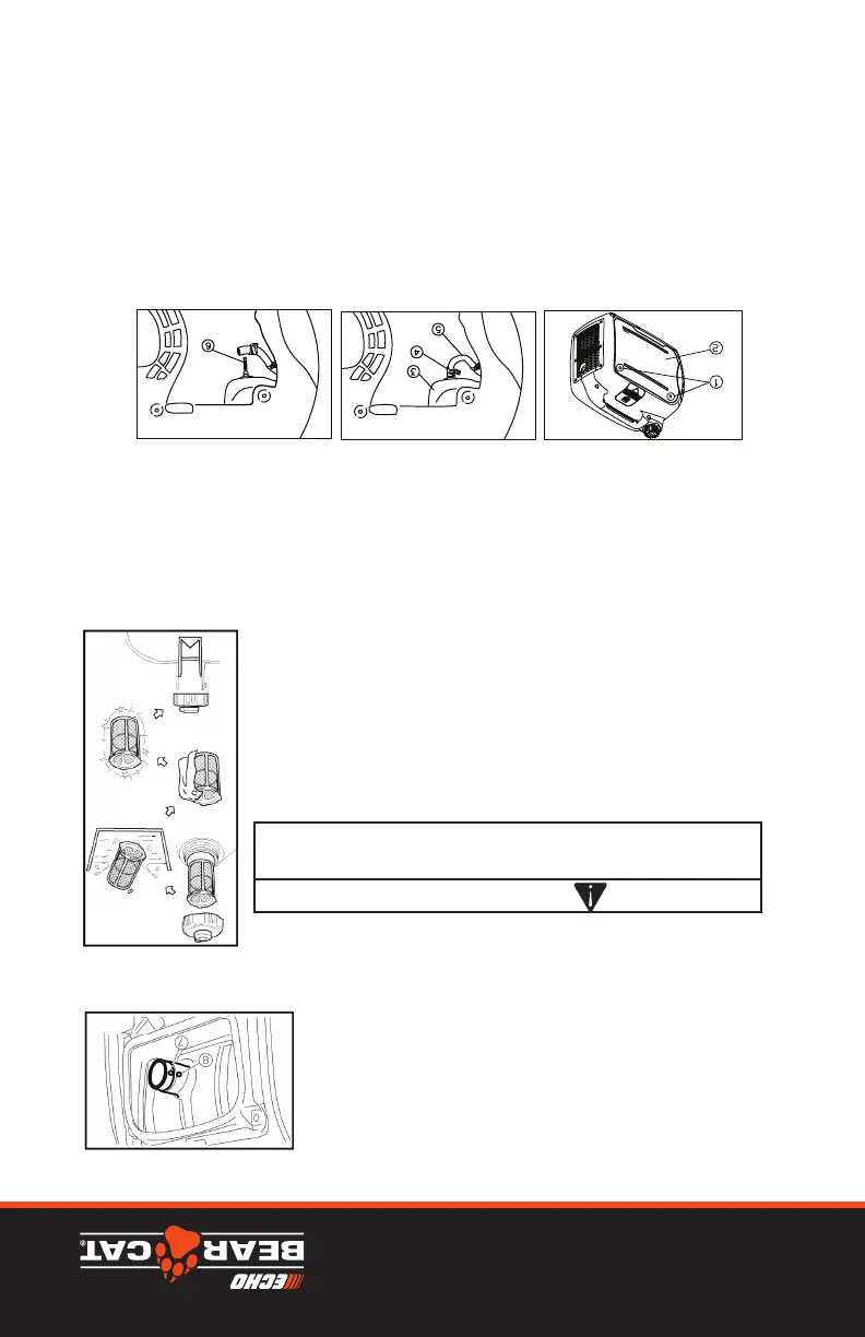 1. Retirez les vis (1), puis enlevez le capot (2) et vidangez le carburant