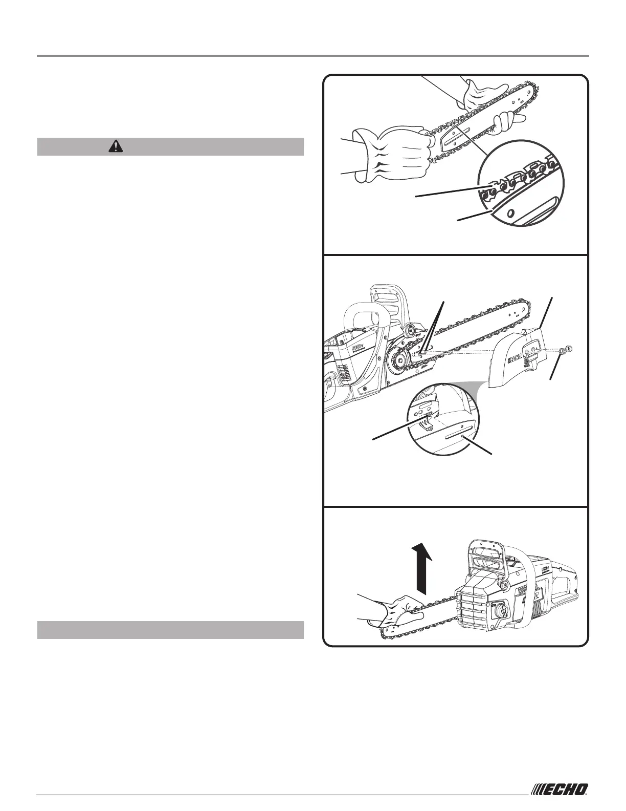 “tensión en frío” de la cadena, antes de usar la sierra.