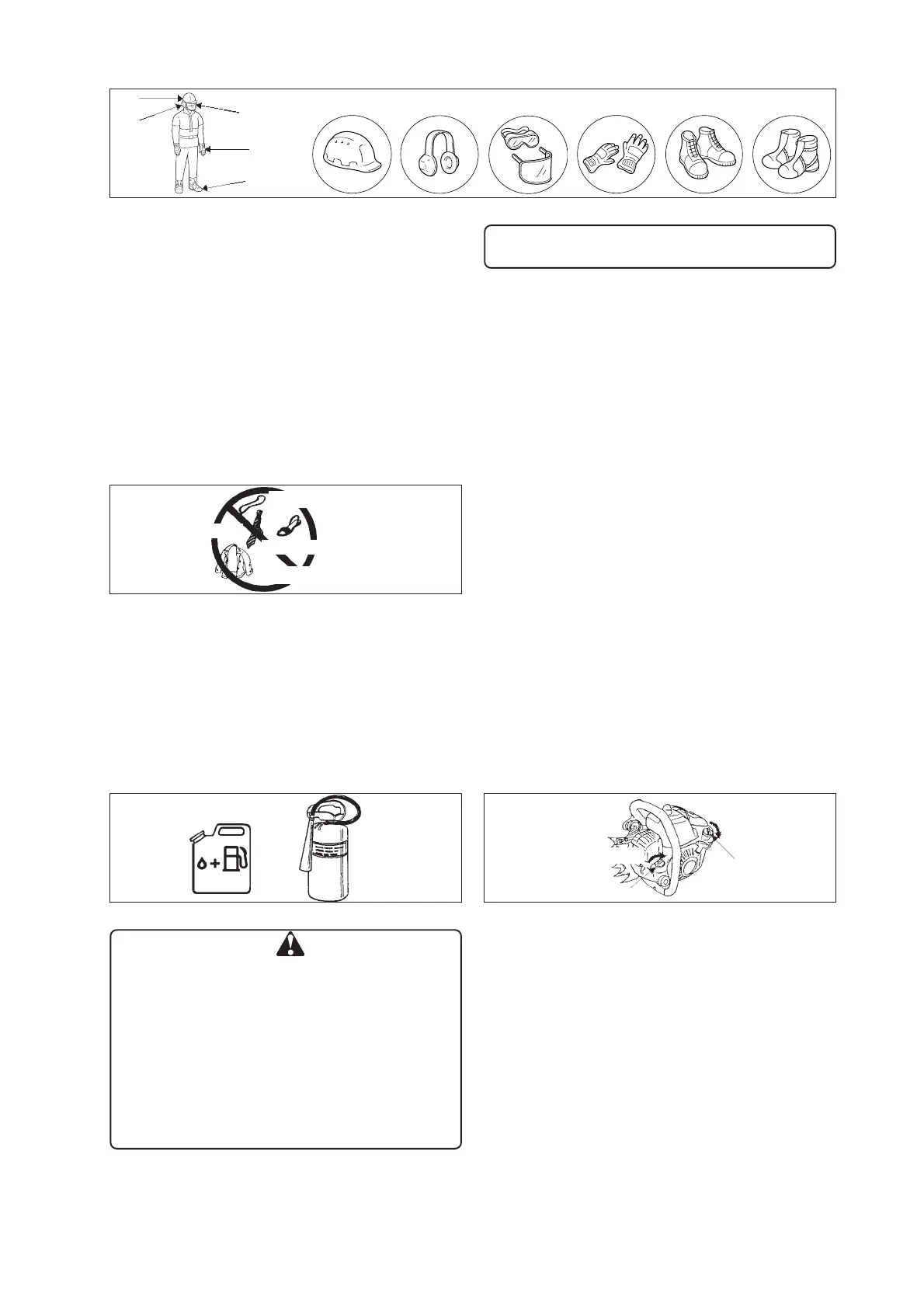 chains, jewelry, etc. which could snag the saw chain or