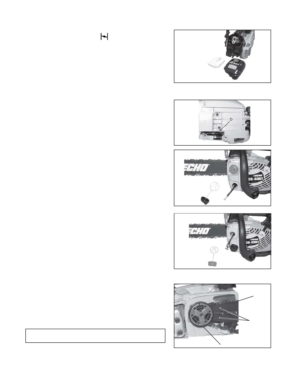 • Follow instructions for “Guide Bar and Saw Chain – Install/Re-