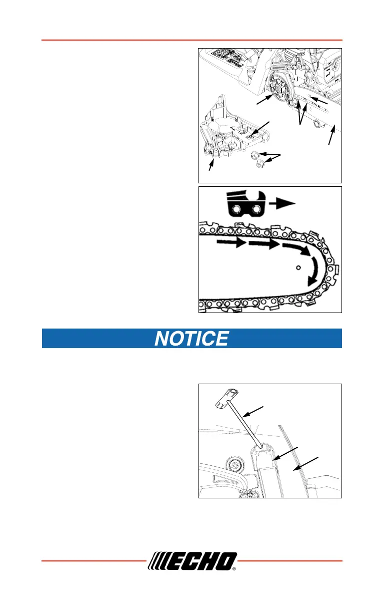 8. Adjust saw chain tension, as