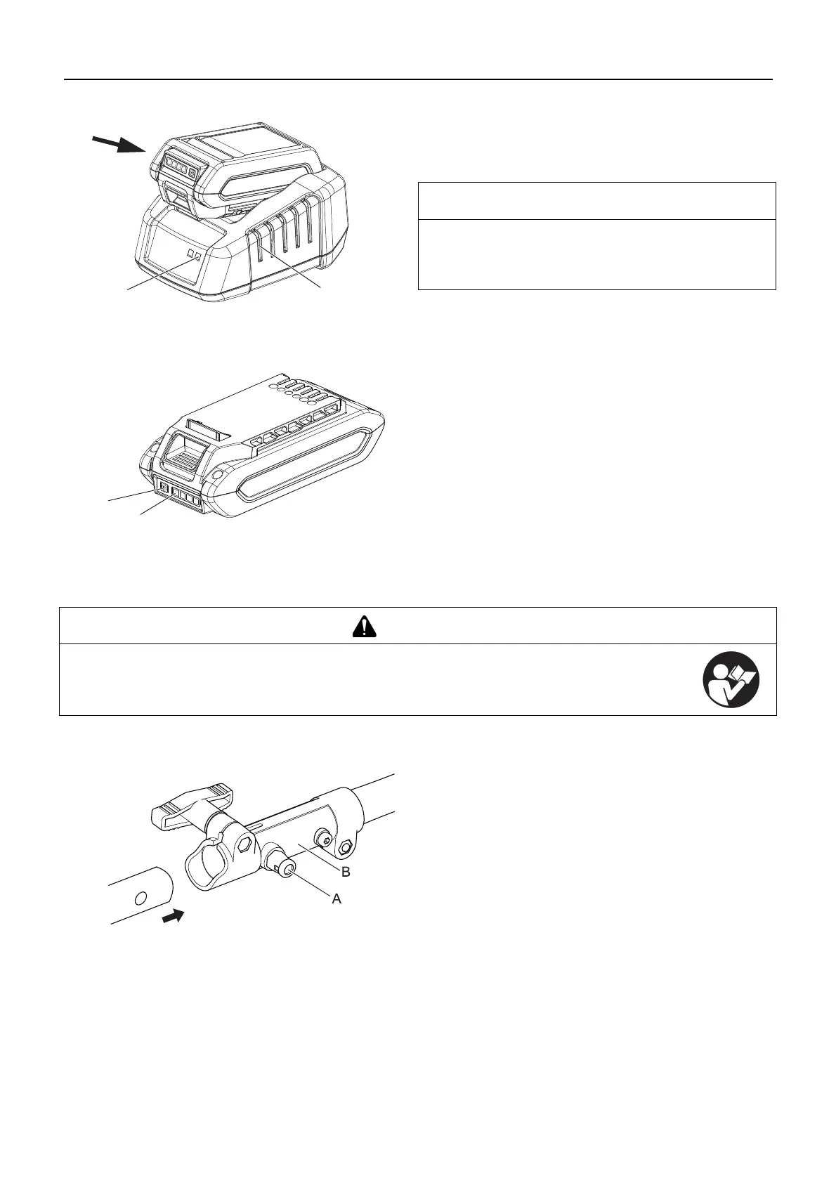 3. During normal charging, the charger LED (B) will blink con-