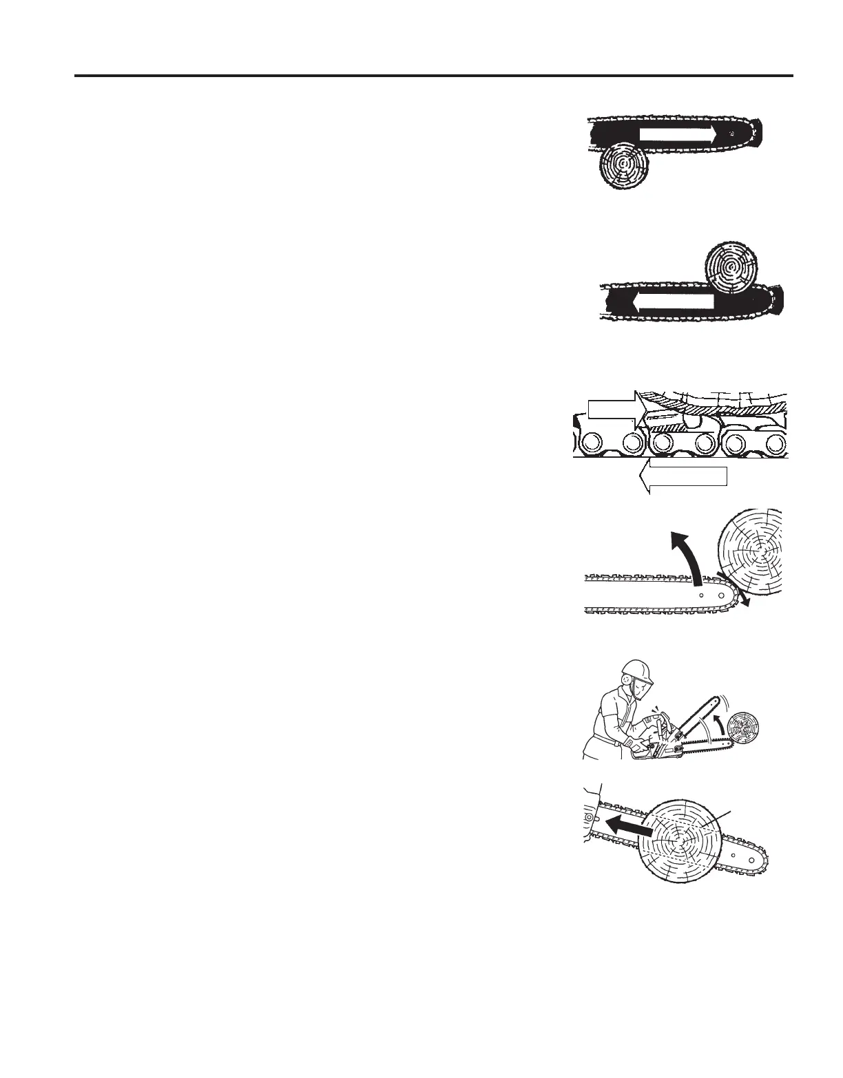 chain moving toward you, the chain saw will be pulled into the wood and