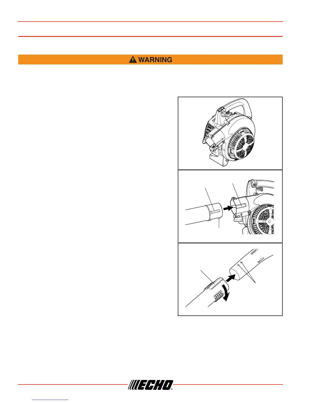 3. Align tabs (D) with grooves (E) and slide lower blower pipe