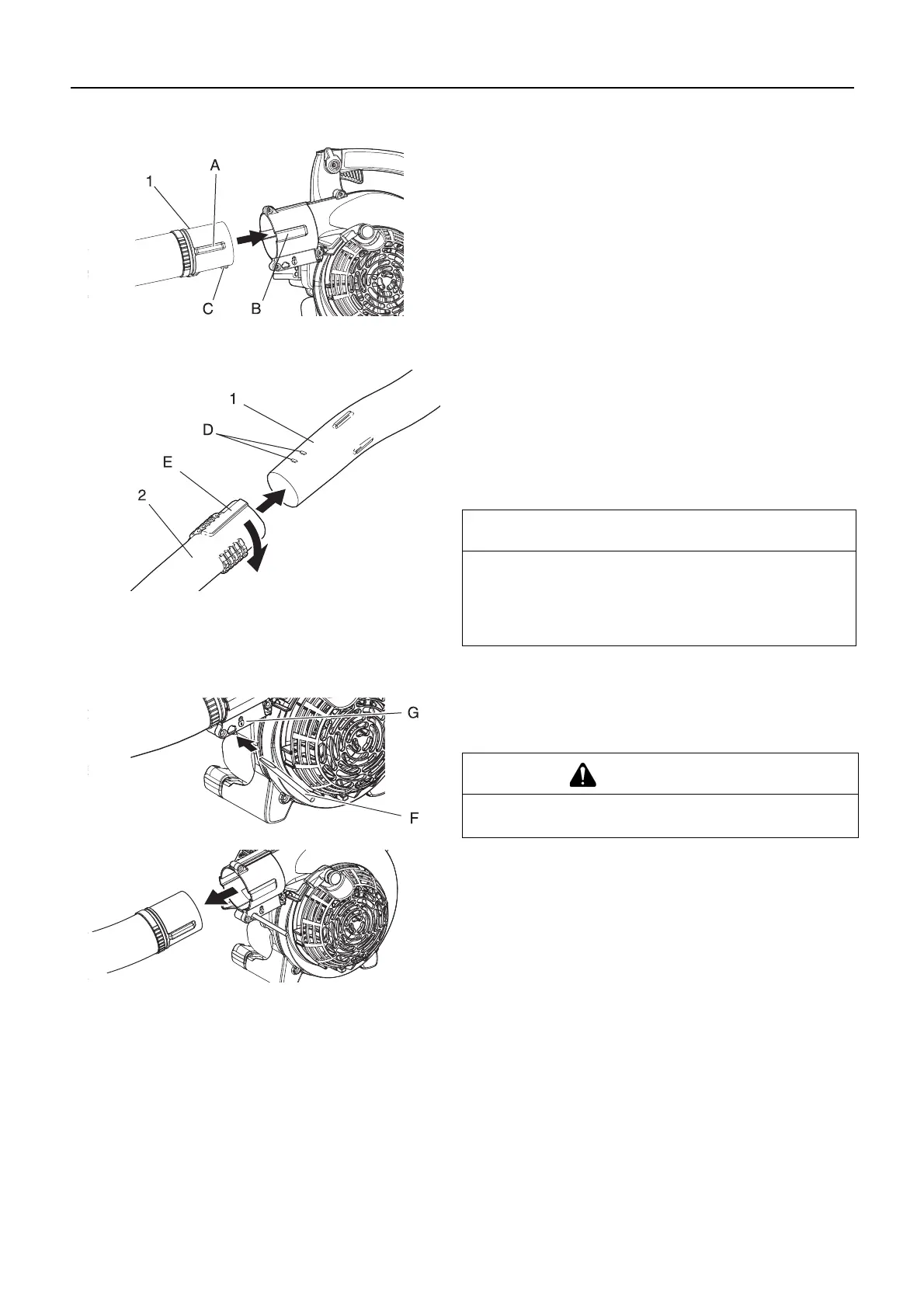 2. Alinee los salientes de bloqueo (A) del tubo del soplador con
