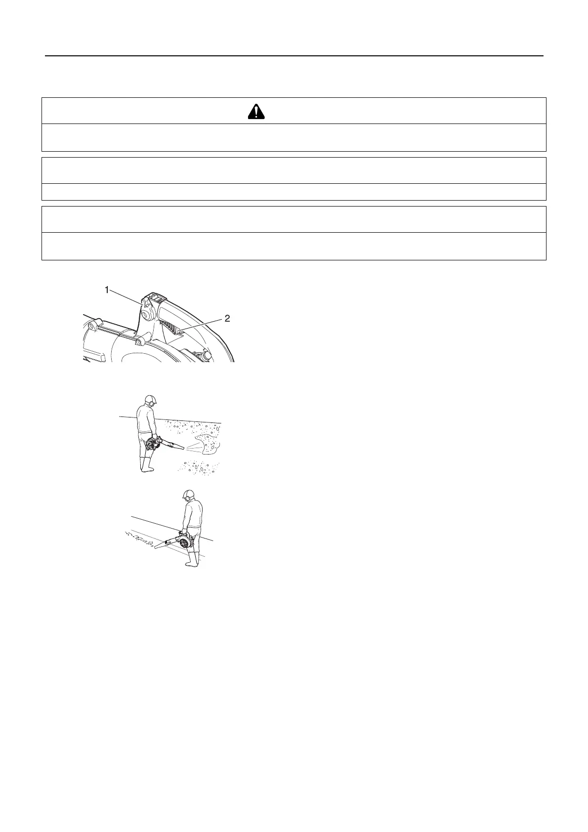 To avoid engine damage due to over revving, do not block blower pipe opening.