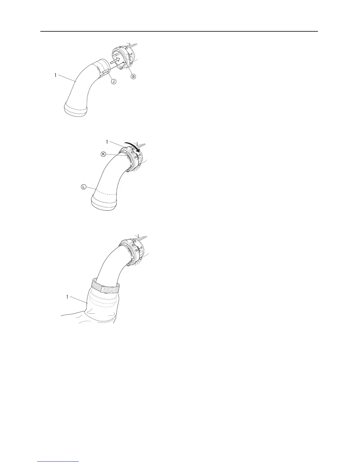 3. Aligner les nervures de blocage (J) sur le coude d'aspiration