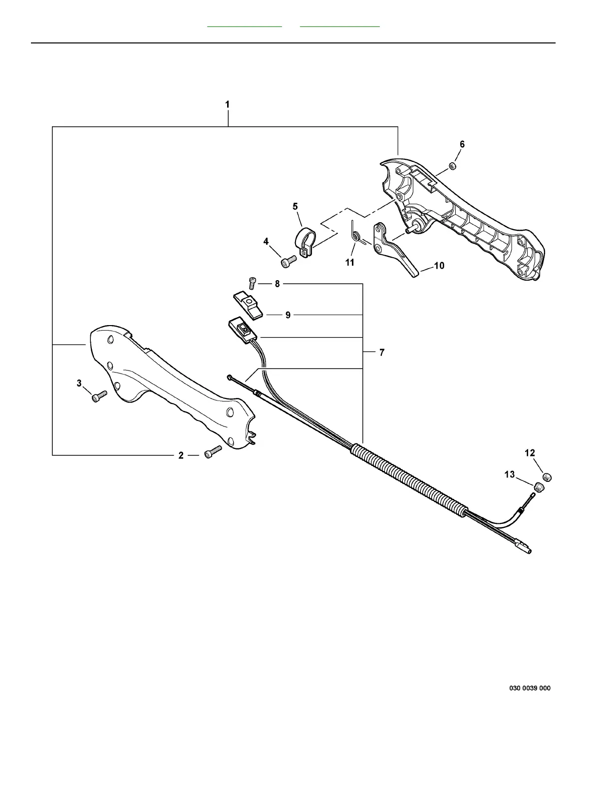 GT-225 Trimmer Control Handle, Control Cable Asy