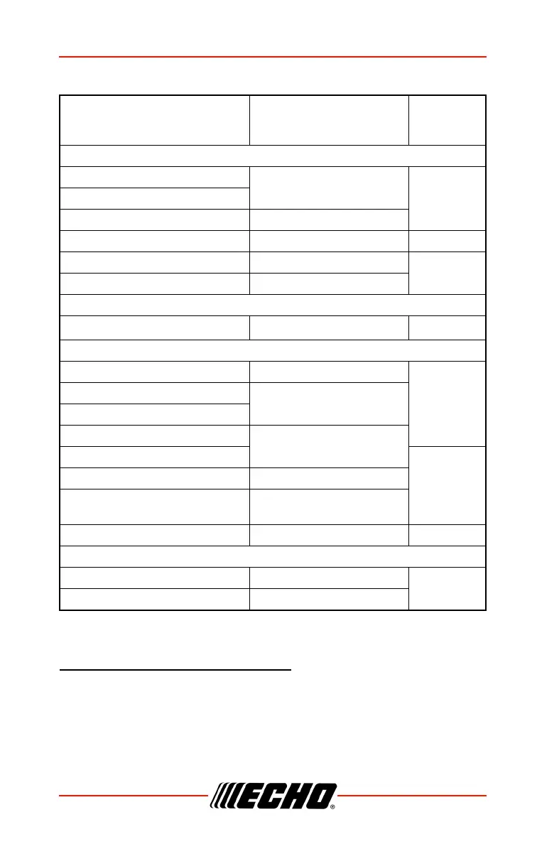 Apply lithium based grease every 25 hours of use.