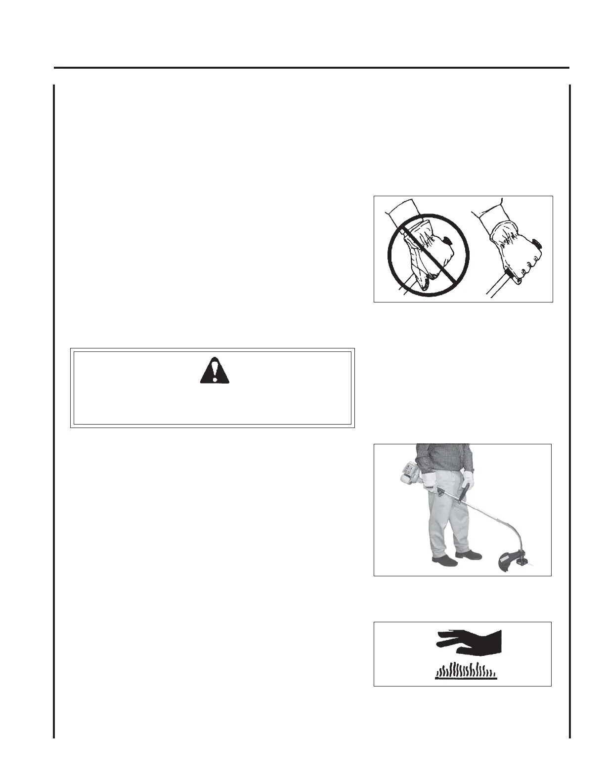 • Keep exhaust area clear of flammable debris. Avoid contact during