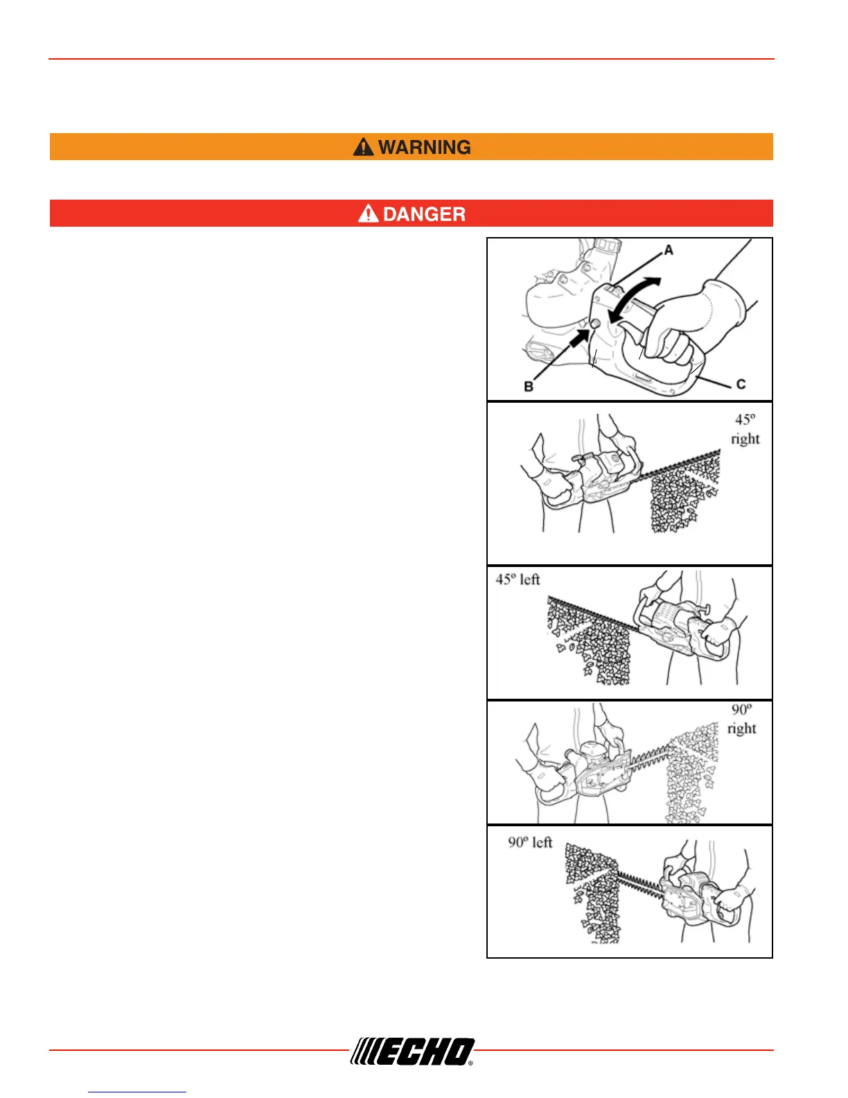 HC-165/185 Hedge Clipper throttle handles are adjustable for operator comfort at all angles of operation.