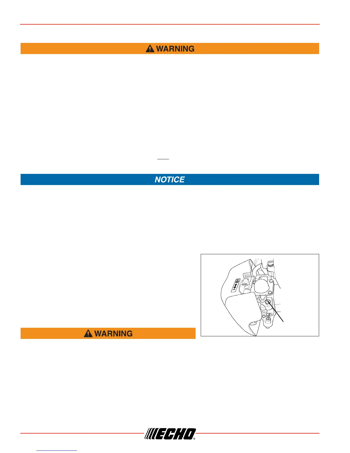 Carburetor adjustments, other than idle speed, must be performed by an authorized ECHO dealer.