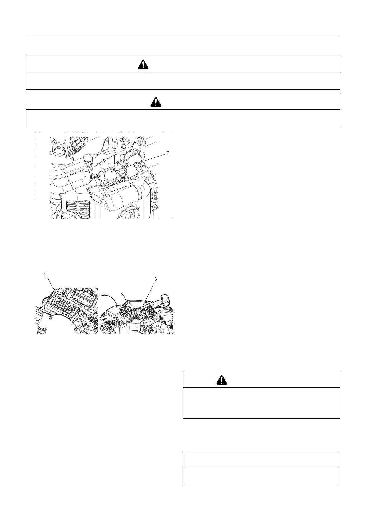Au démarrage, le dispositif de réglage du régime de ralenti (T) doit être réglé de telle sorte que la lame ne tourne pas.