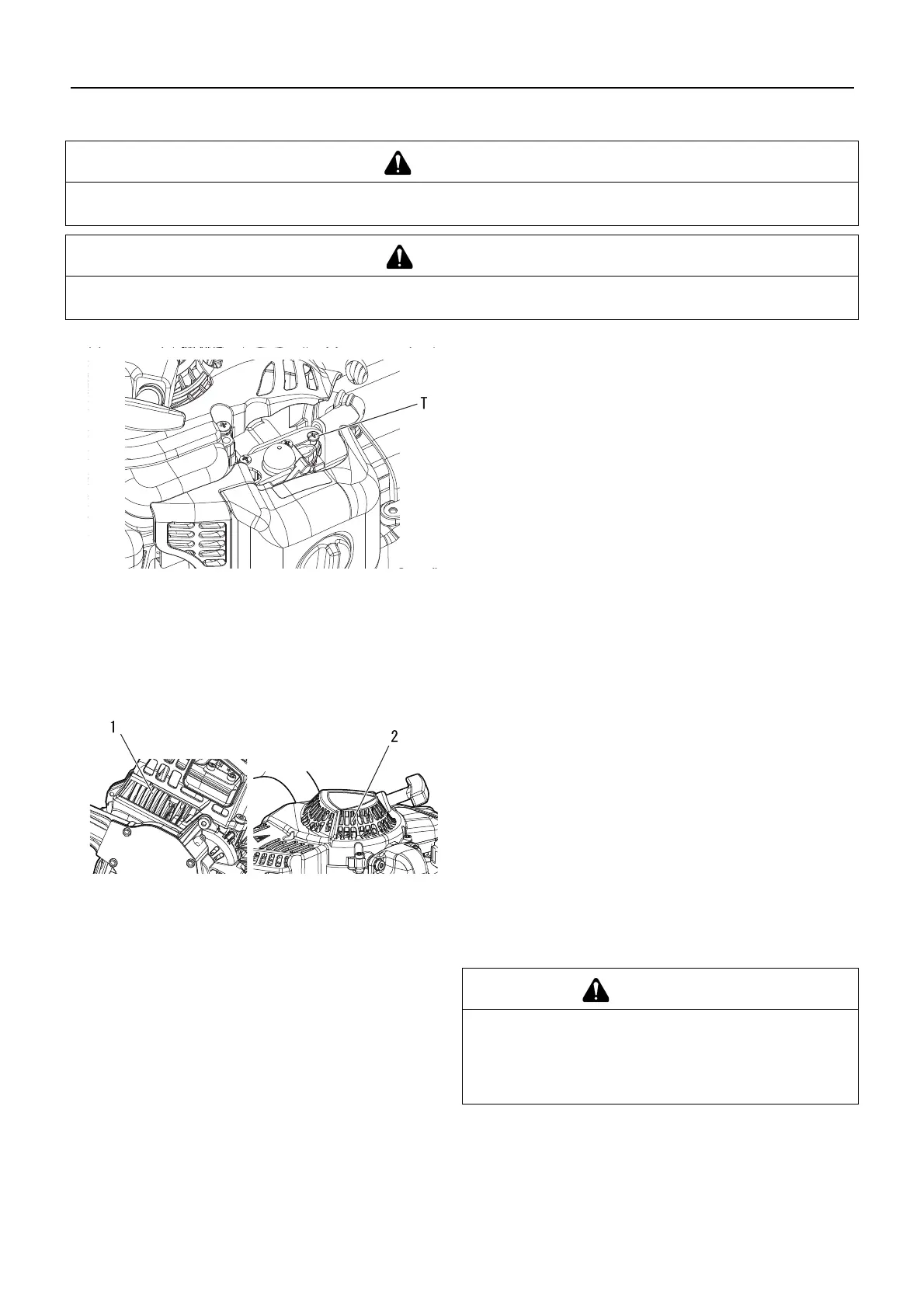 Die Leerlaufanschlagschraube (T) muss so justiert sein, dass sich das Schneidmesser beim Starten nicht bewegt. Wen-