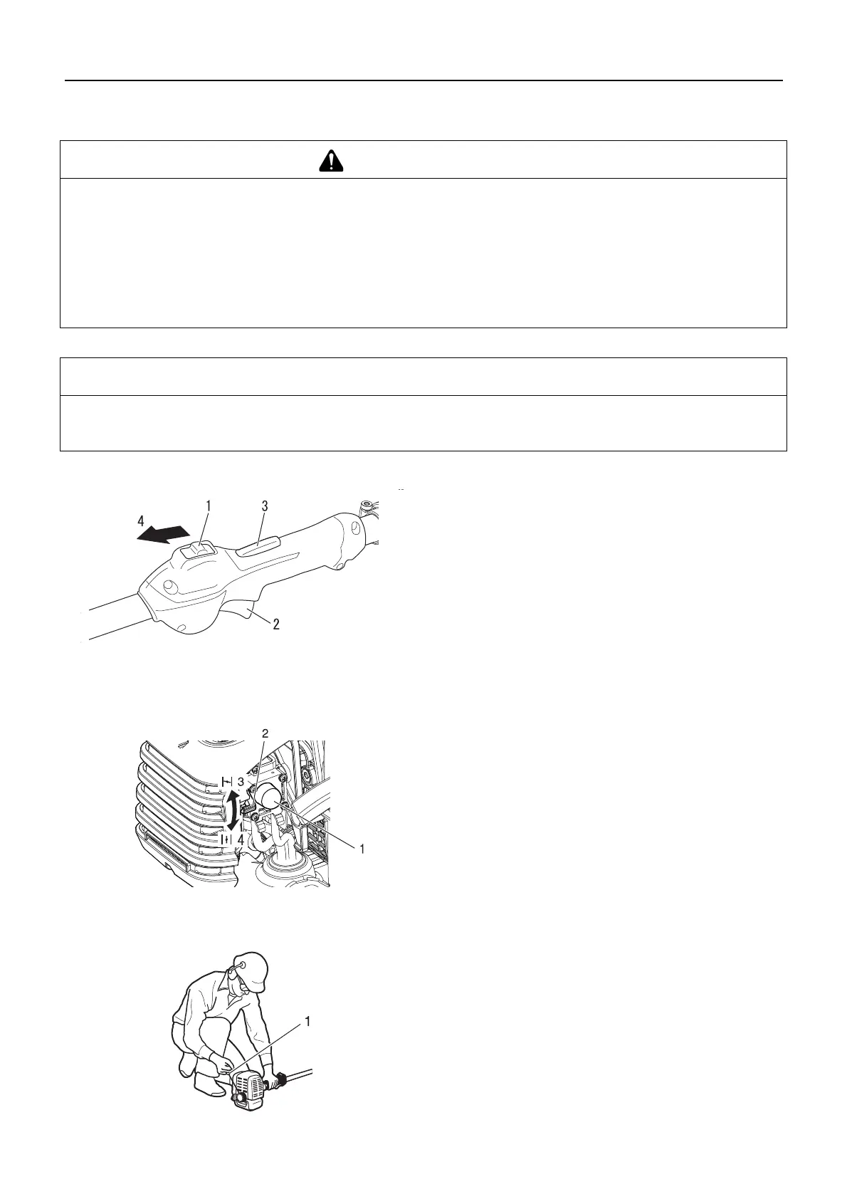 L'outil de coupe se met en marche dès que le moteur démarre. Attention aux pertes de contrôle et aux éventuelles