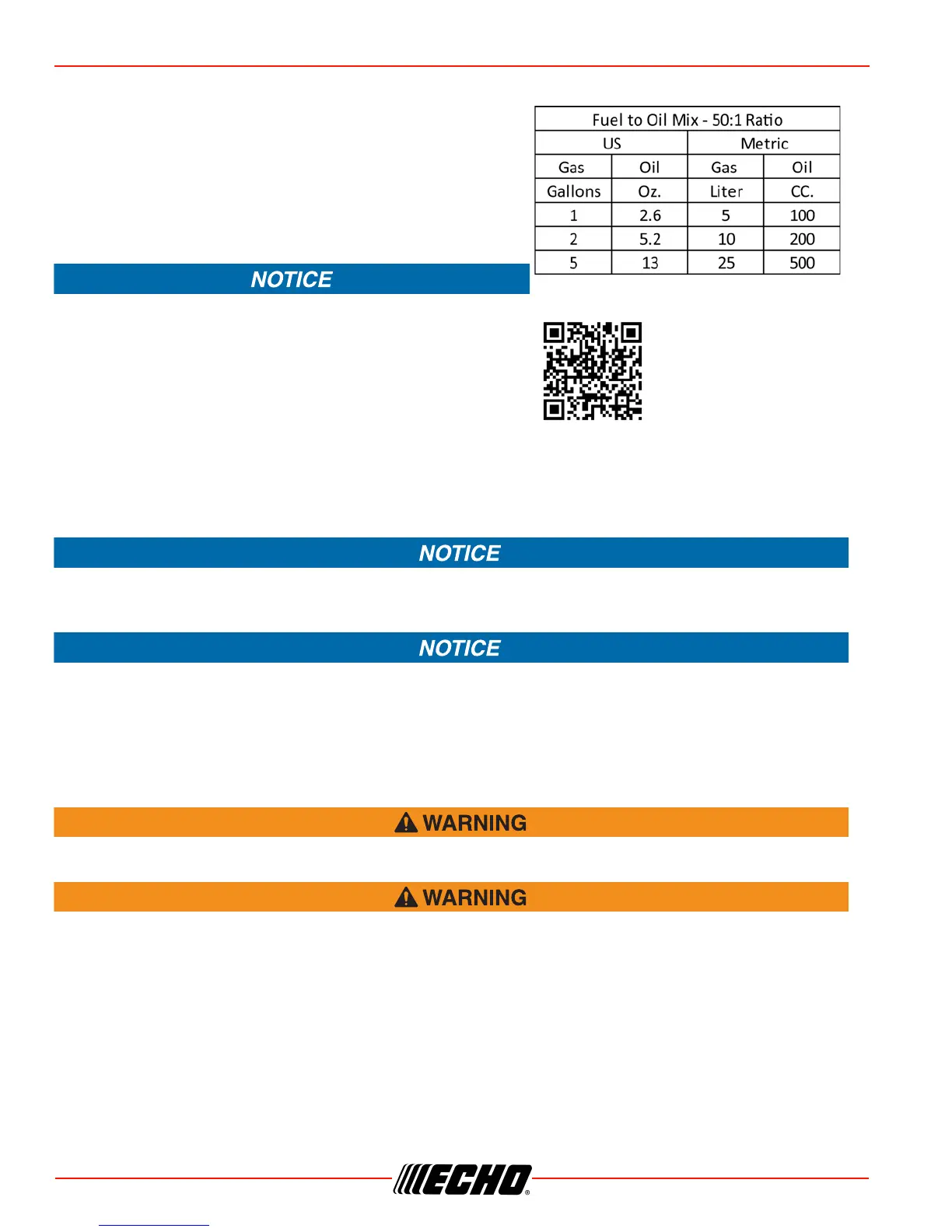 Stored two-stroke fuel may separate. ALWAYS shake fuel container thoroughly before each use.