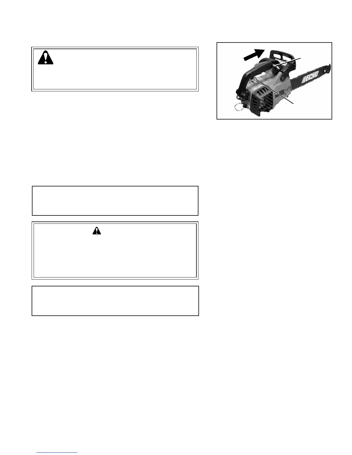 3. Lay unit on a at, clear area and keep bar and chain clear of