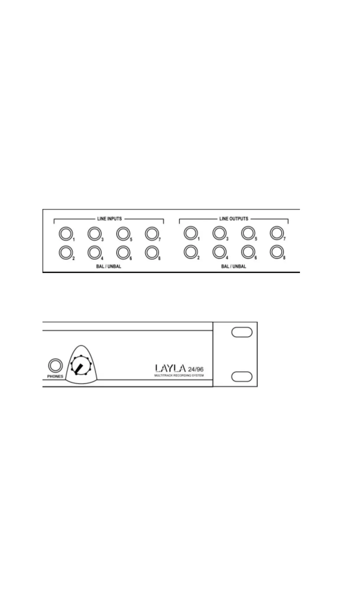 Layla24 has eight analog inputs and eight analog outputs on the rear panel. The