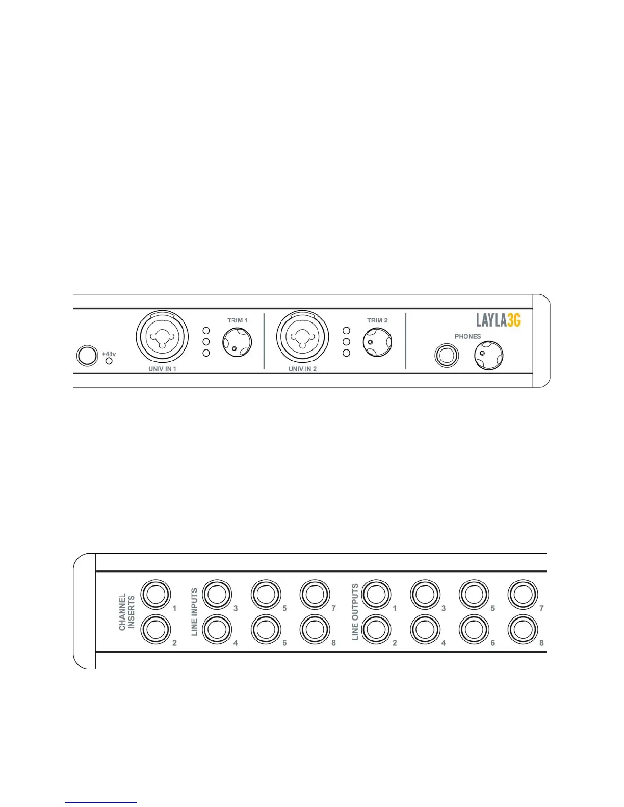 The Layla3G and Gina3G audio interfaces contain a wide variety of connections