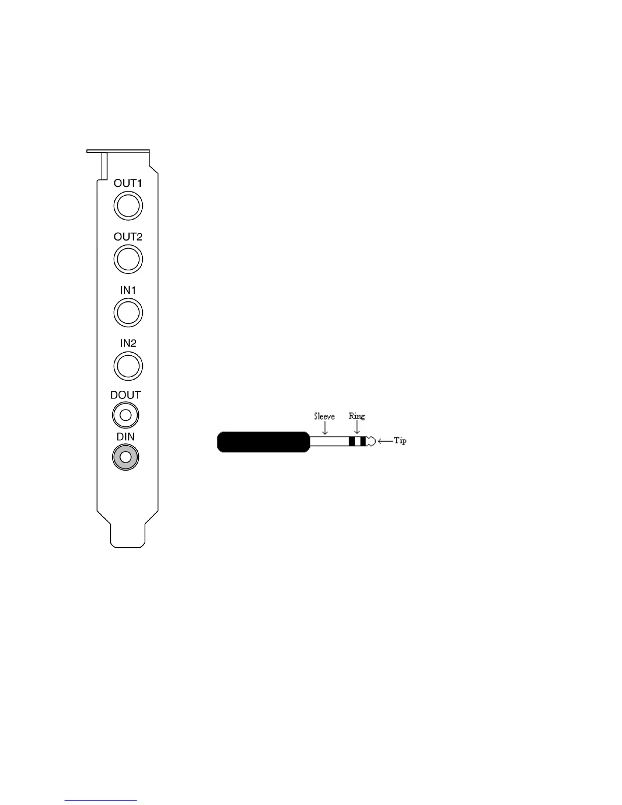 connectors. Mia uses TRS connectors (tip, ring sleeve)