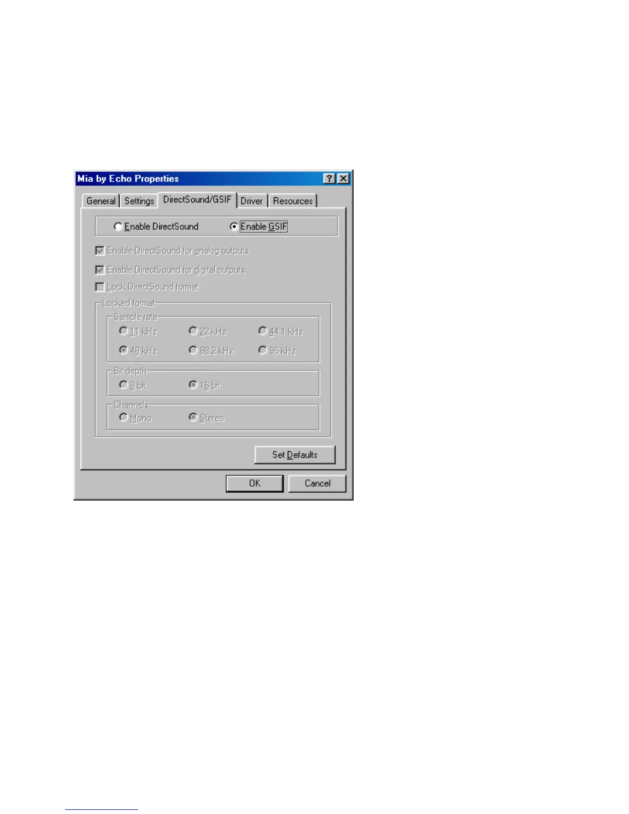 Click on the DirectSound/GSIF tab. The window will change to look like this:
