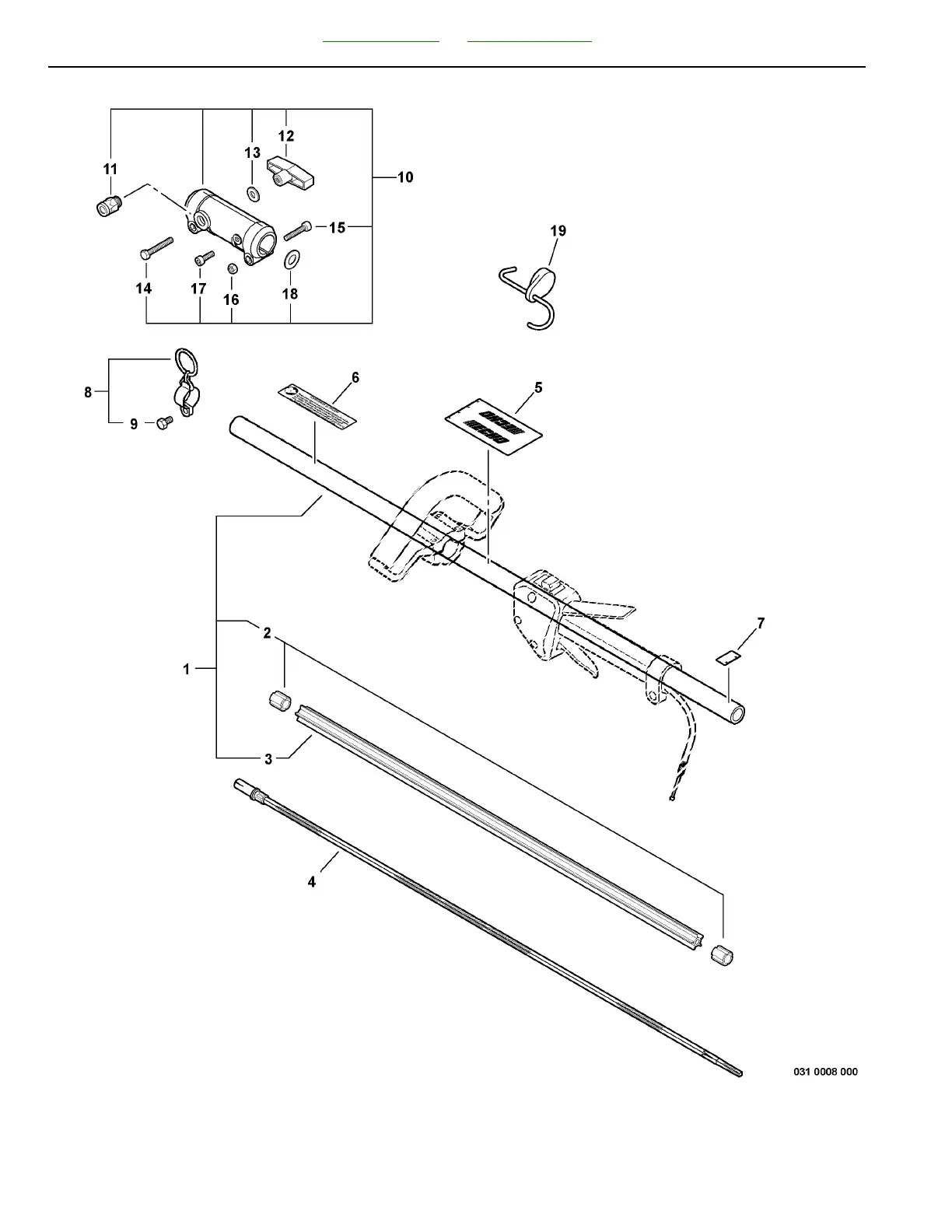 PAS-260 Pro Attachment Series Main Pipe Assembly, Flexible Driveshaft, Coupler -- Upper