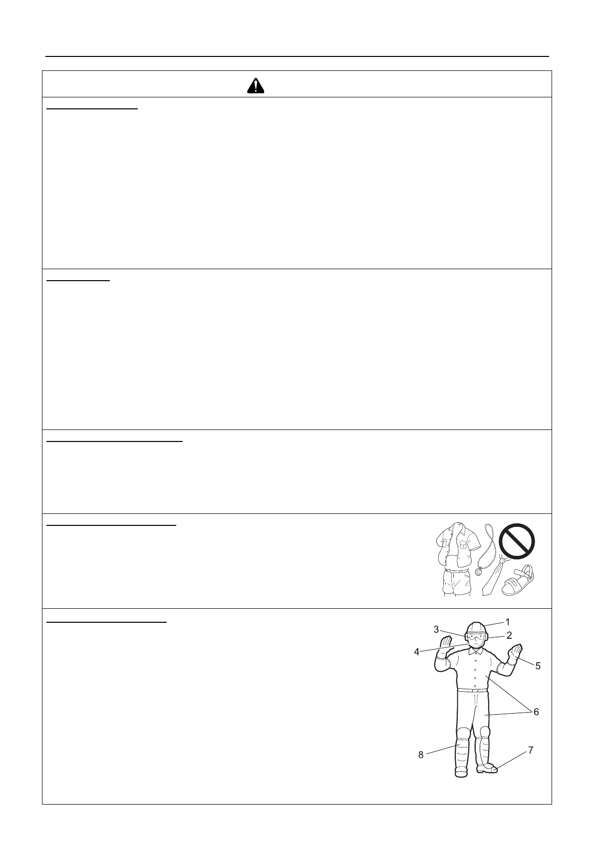 6. Eng anliegende Arbeitskleidung (lange Ärmel, lange Hosen): schützt den