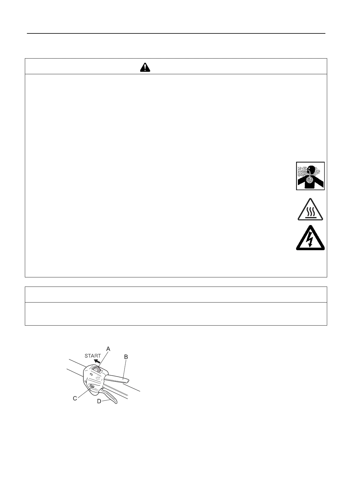 Non toccare la candela, il suo cavo o altri componenti ad alta tensione mentre il prodotto è acceso.