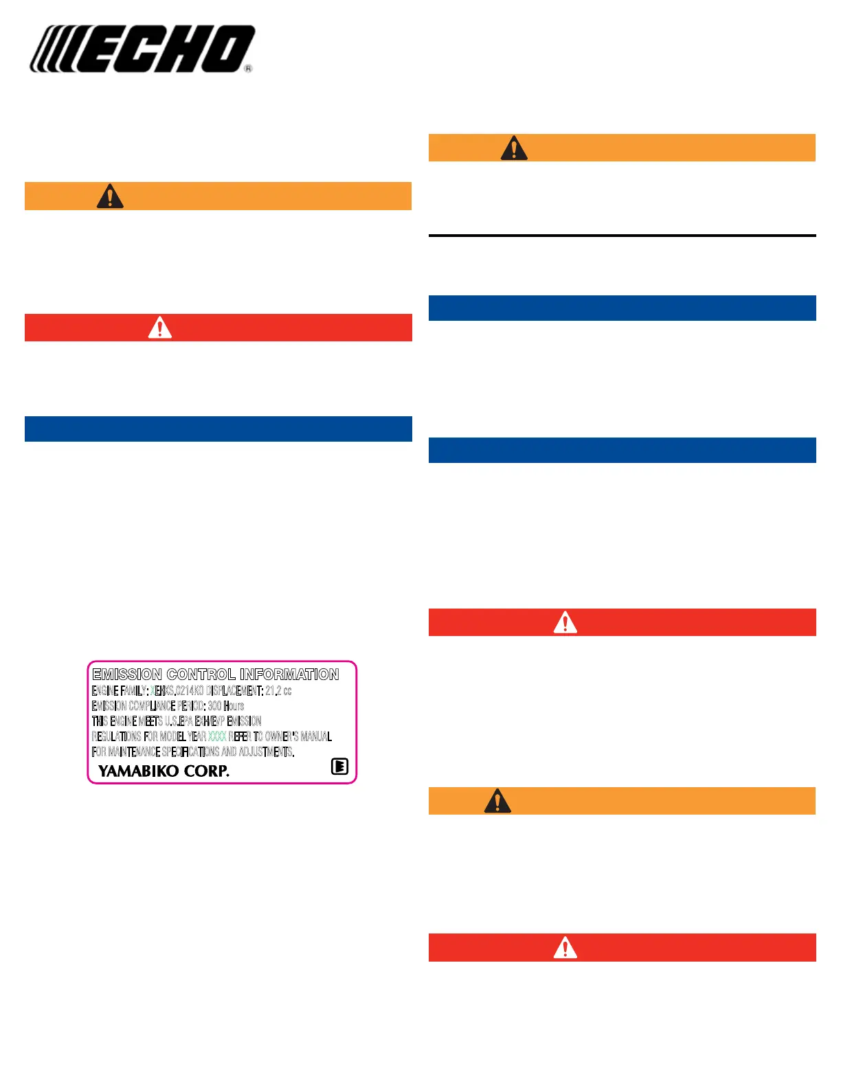 ENGINE FAMILY: XEHXS.0214KO DISPLACEMENT: 21.2 cc