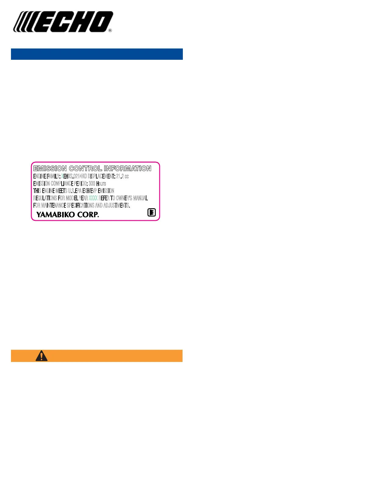 ENGINE FAMILY: XEHXS.0214KO DISPLACEMENT: 21.2 cc