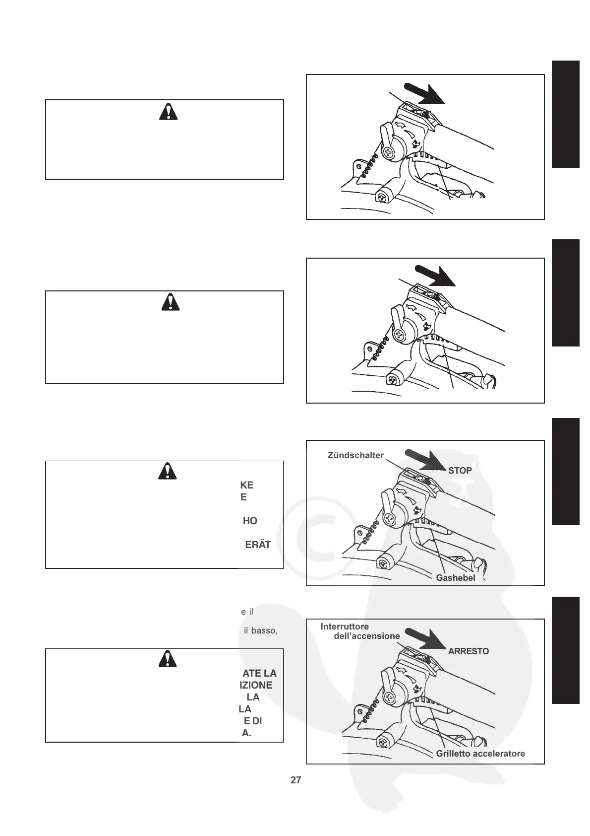 1. Den Gashebel loslassen und den Motor im Leerlauf