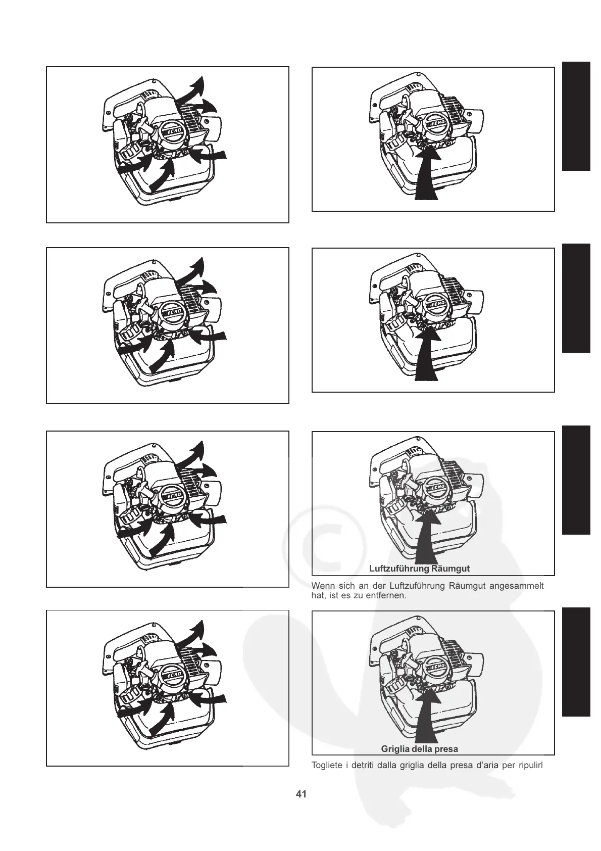 Togliete i detriti dalla griglia della presa d’aria per ripulirlo.