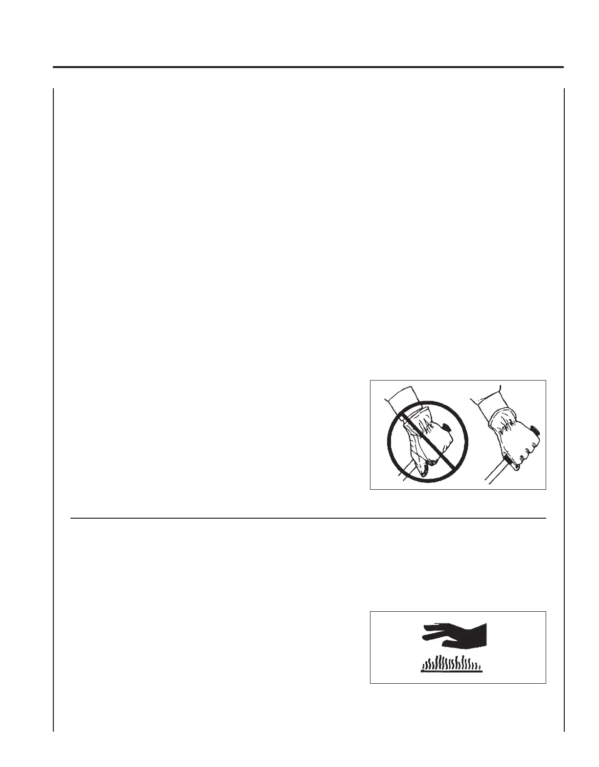 • Keep exhaust area clear of flammable debris. Avoid contact during