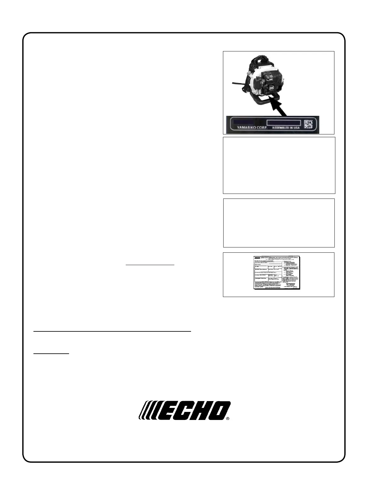 usa.com or by contacting ECHO Inc., 400 Oakwood Road, Lake Zurich, IL 60047 (800-673-1558). Always check the