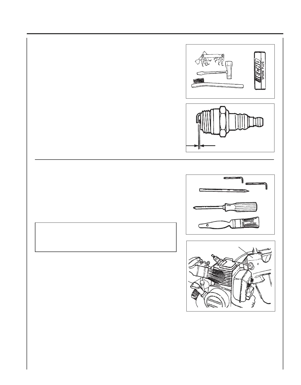 1. Remove spark plug and check for fouling, worn and rounded center